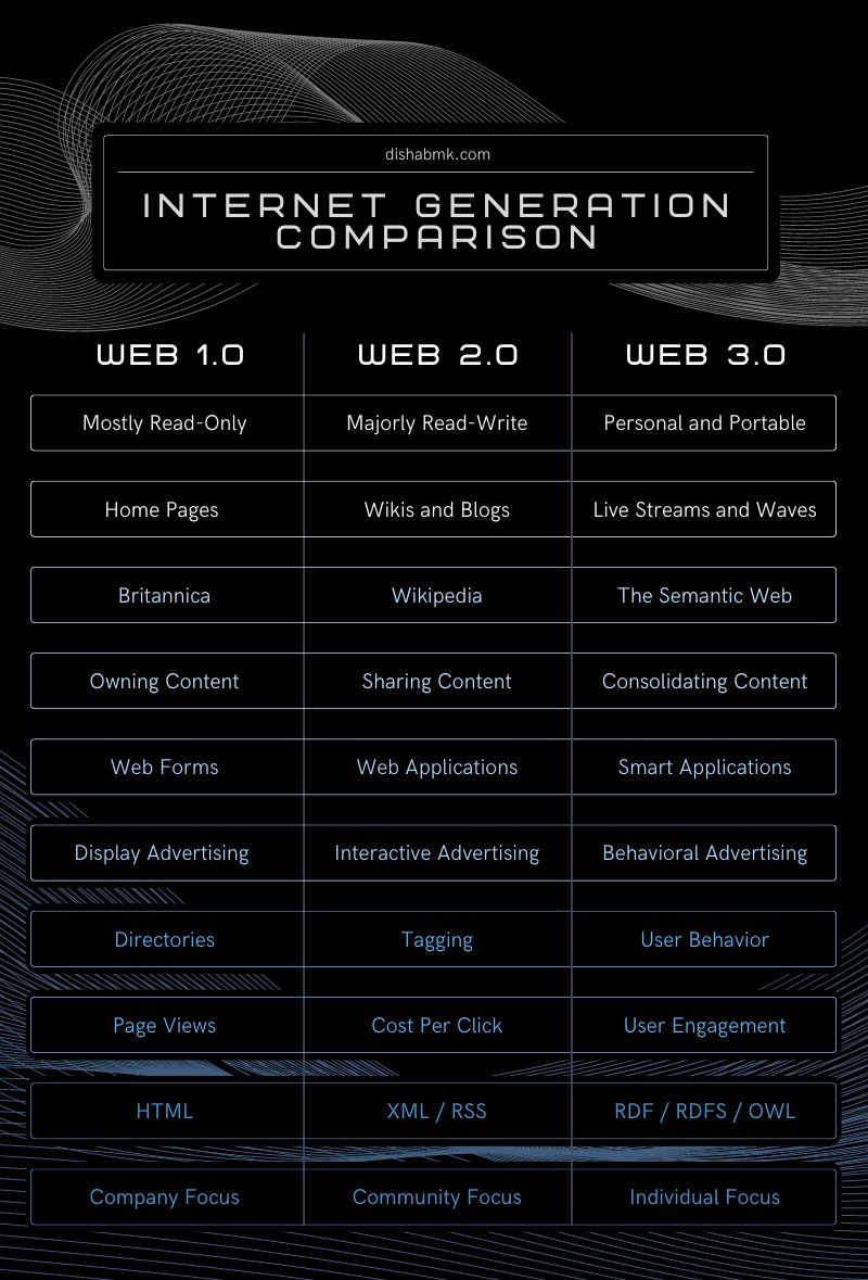 To grasp a better idea of Web 3.0, consider its predecessors: Web 1.0 and Web 2.0. For a further comparison, refer to Investopedia.